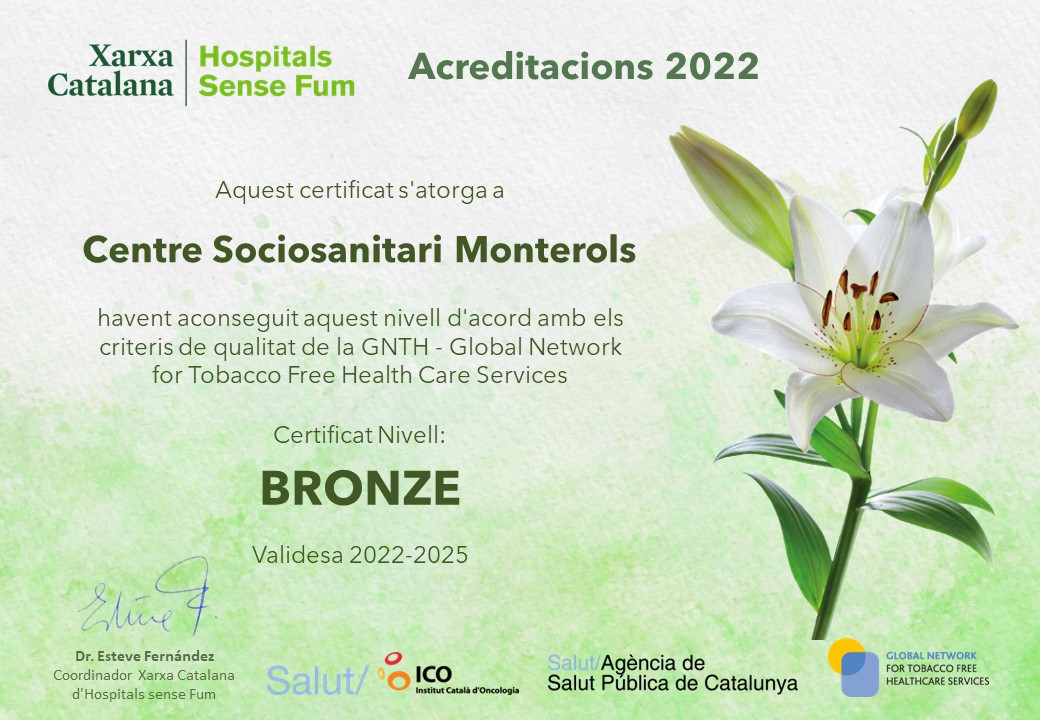 Membres Select a person… Thomas Edison Nikola Hospital Universitari Arnau de Vilanova. ICS Acadèmia Mariana (Sant Joan de Déu Terres de Lleida) Centre Sociosanitari Monterols Certificat nivell BRONZE (2022-2025) Membres segons nivell d’acreditació OR ARGENT- MENCIÓ OR ARGENT BRONZE MEMBRE