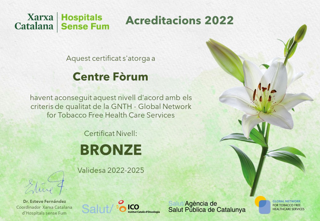El PSMAR, grup al qual pertany el Centre Fòrum, va crear l’any 2000 la Comissió Hospitals sense Fum amb l’objectiu de mantenir el conveni amb la XCHsF i col·laborar en les seves accions, contribuir al seguiment de la llei, organitzar el Dia Mundial Sense fum, promoure projectes de recerca relacionats amb el tabac i fer el seguiment dels PDT.
